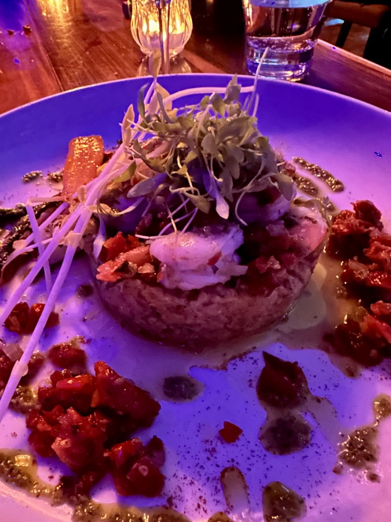 The menu bore a striking resemblance to the previous Niche, offering familiar favorites like the Cannellini Bean Bisque, which we eagerly started with. Topped with a truffle emulsion and served with homemade Caribbean toast, it delivered on all fronts. The delicacy of the creamy white bean soup remained as exquisite as remembered. However, what truly intrigued me about the menu were the new additions that offer a Puerto Rican flair.