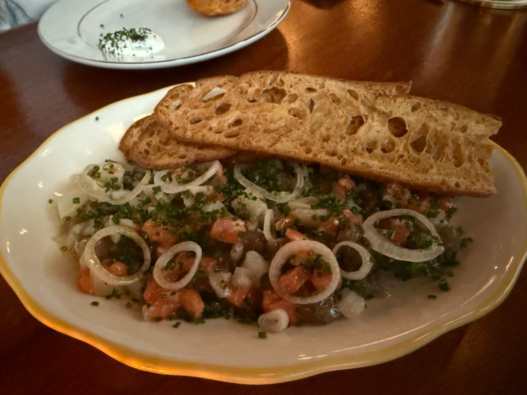 Next, we dove into the Sicilian Tar Tar, an exceptional dish that offers a refreshing take reminiscent of ceviche. Combining tuna, salmon, scallops, capers, shallots, chives, and pickled pearl onions, it’s a perfect balance of flavors. Served on a crunchy focaccia crostini, this dish was not only visually stunning but also a testament to the kitchen’s finesse.