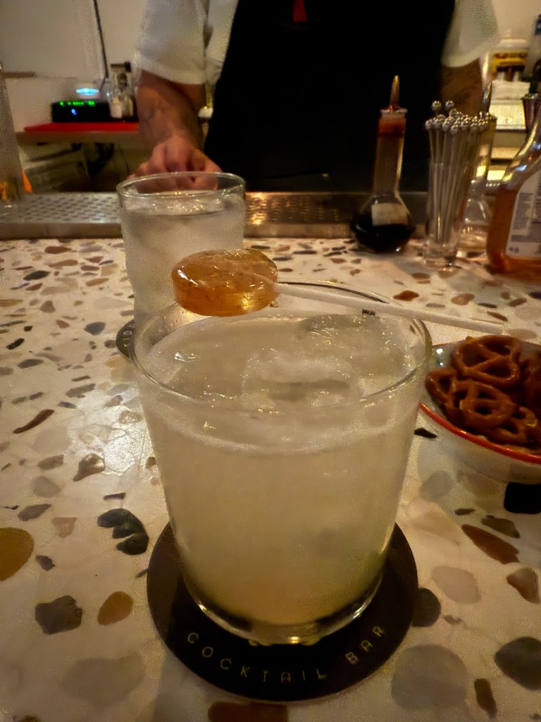 I started with the Mi Ultima Palabra, a bold and creative cocktail with mezcal, lime, genepy, grapefruit, and topped off with a habanero and Tajin lollipop. This one drink is a showstopper! It reminded me of a spicy margarita but with a sophisticated twist. The lollipop added a fun, interactive element, balancing sweet, smoky, and spicy notes beautifully. This was a perfect way to kick off the night.