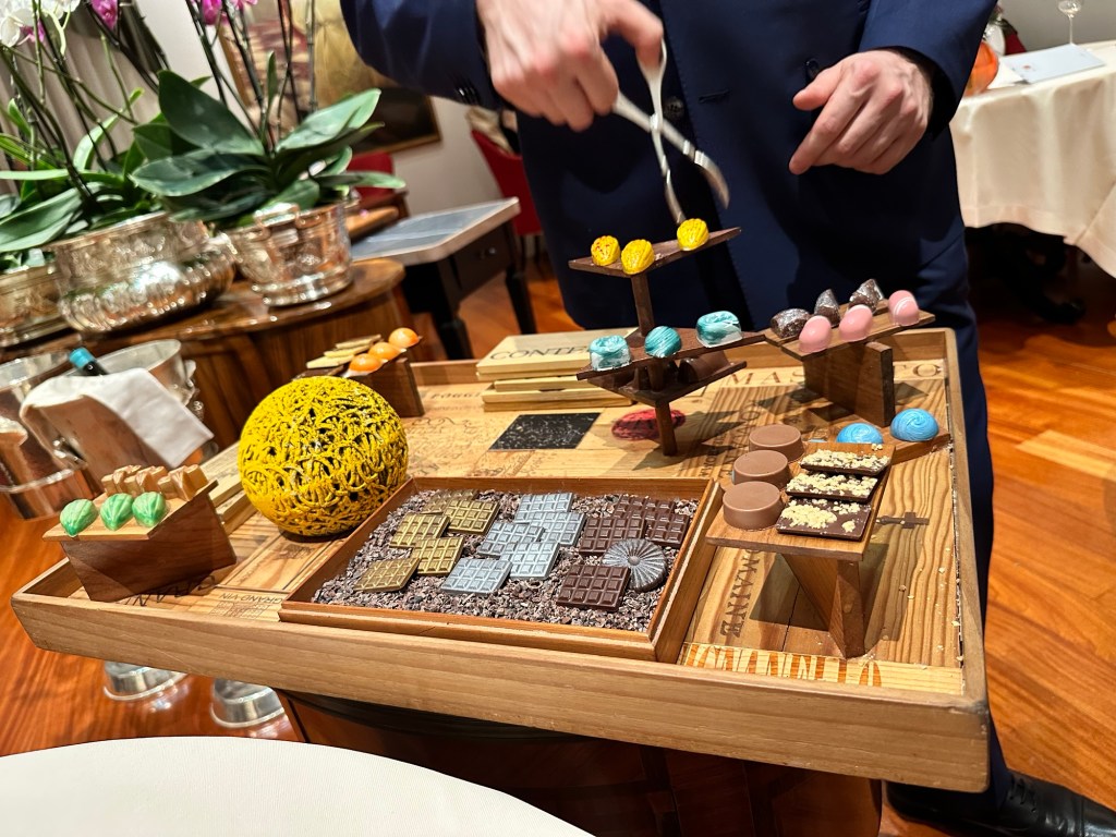 A memorable moment was the cheese cart—truly a spectacle. And as if that weren’t enough, the finale featured a chocolate cart that made us feel like children in a candy factory.